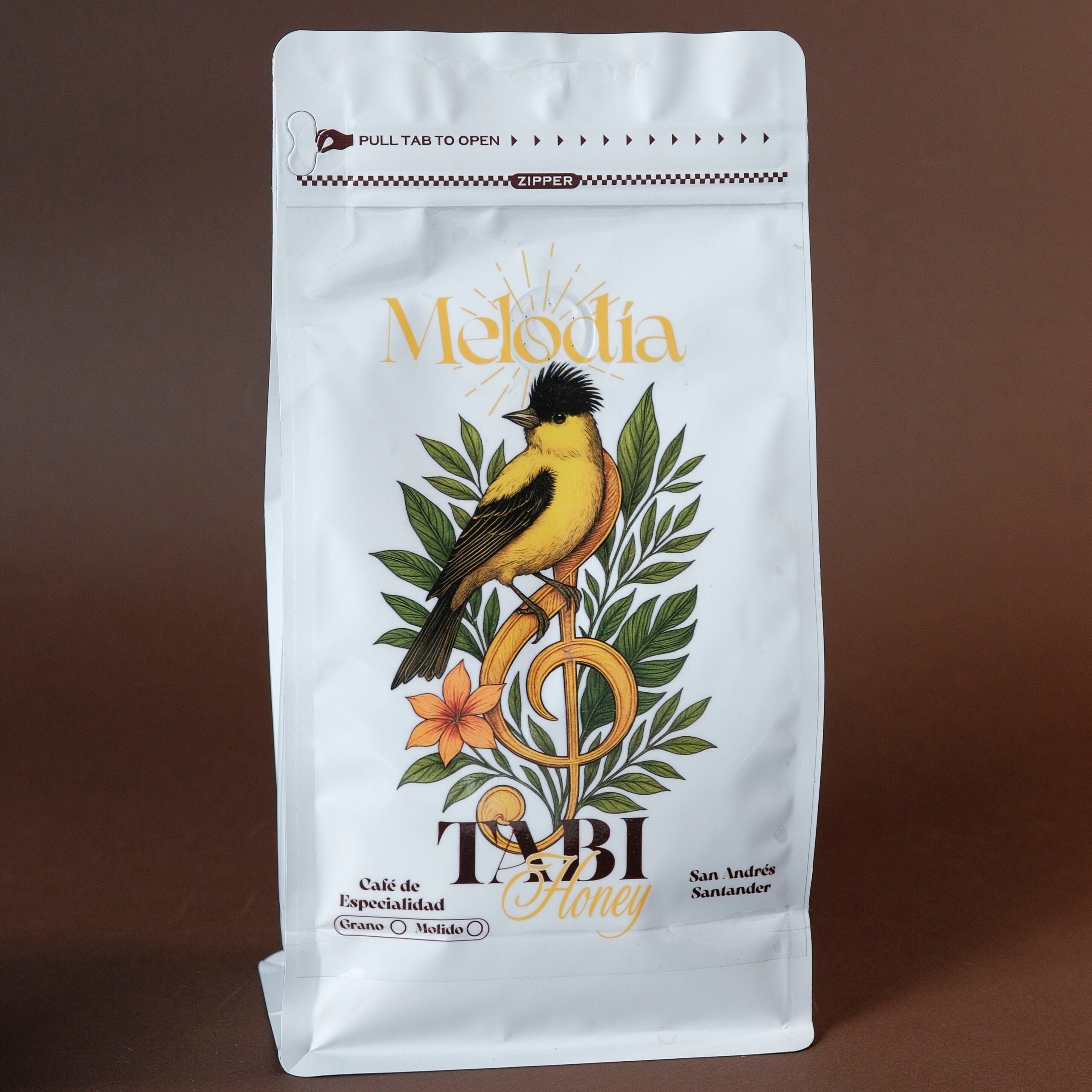 Regala o disfruta de una experiencia única con Café Melodía, un café de especialidad. Este paquete incluye 250g de café (disponible en grano o molido) y un llavero que contiene una canción de artistas emergentes, ideal para los amantes del buen café.